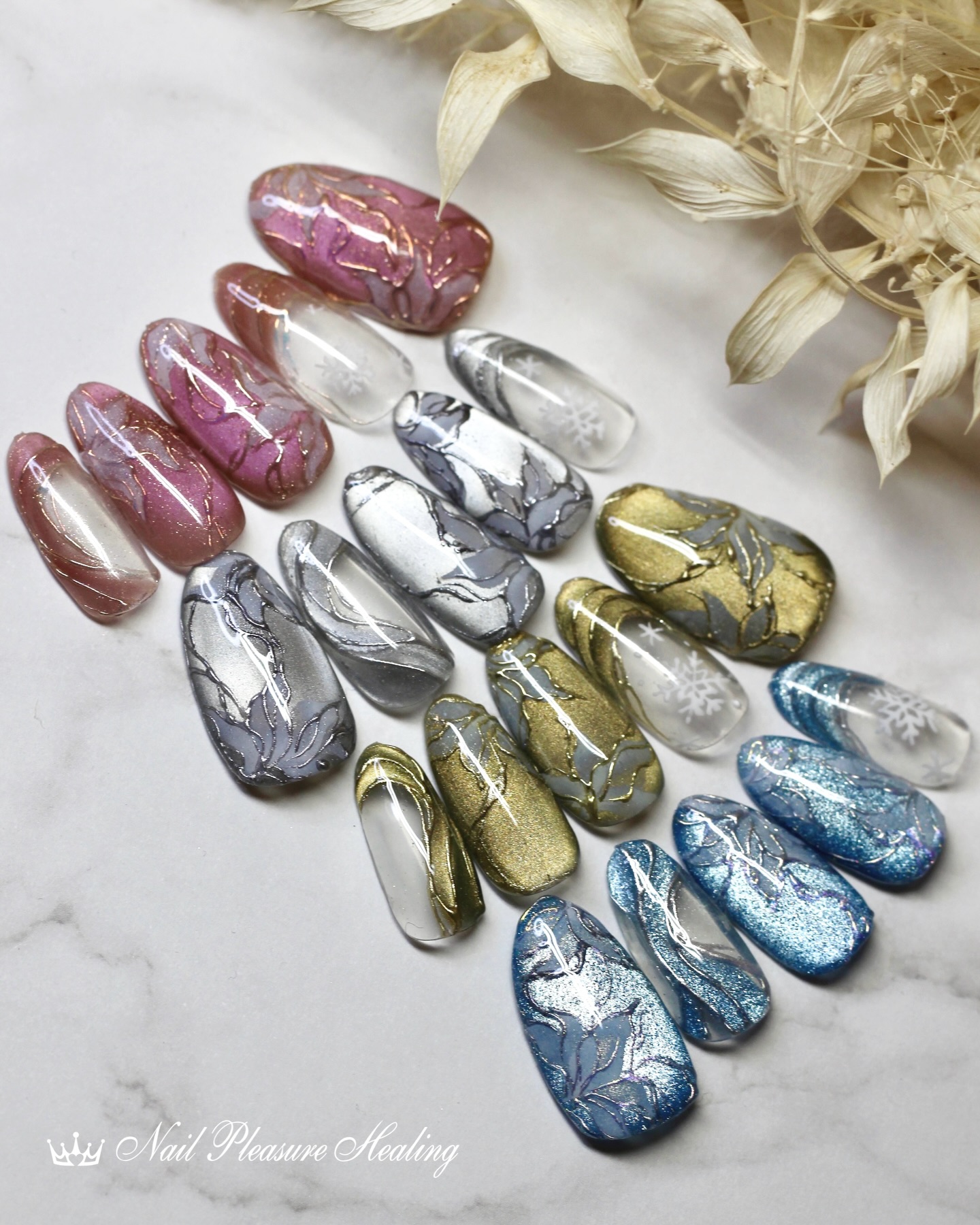 ネイルプレジャーヒーリングでは、お客様おひとりおひとりの自己表現を大切にオリジナルネイルアートを作り出します。