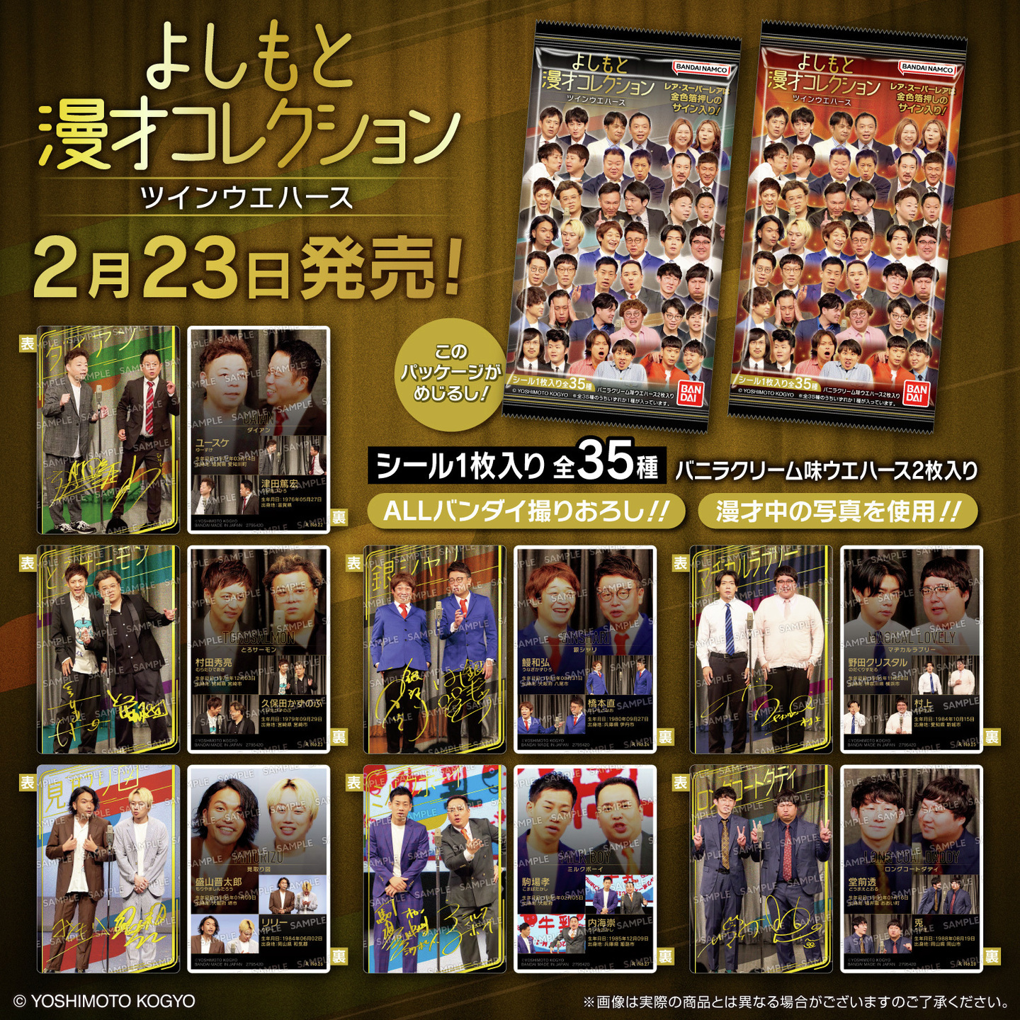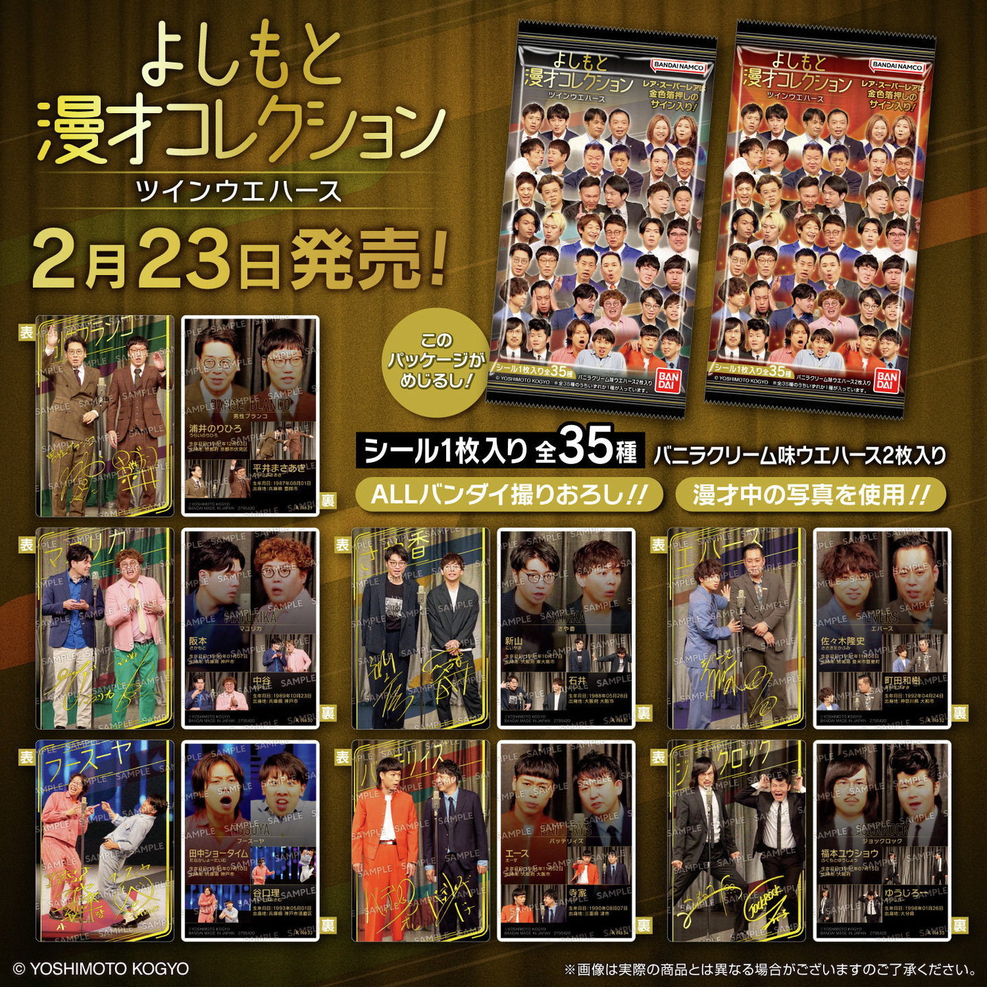 【 #よしもと 漫才コレクション ツインウエハース】は2月23日(月)全国のお菓子売り場等で発売!