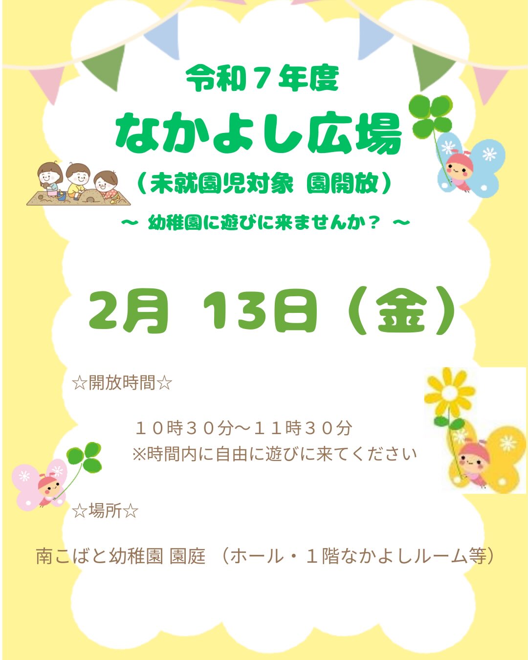 未就園児を対象に『なかよし広場』として幼稚園の一部を開放します❗️