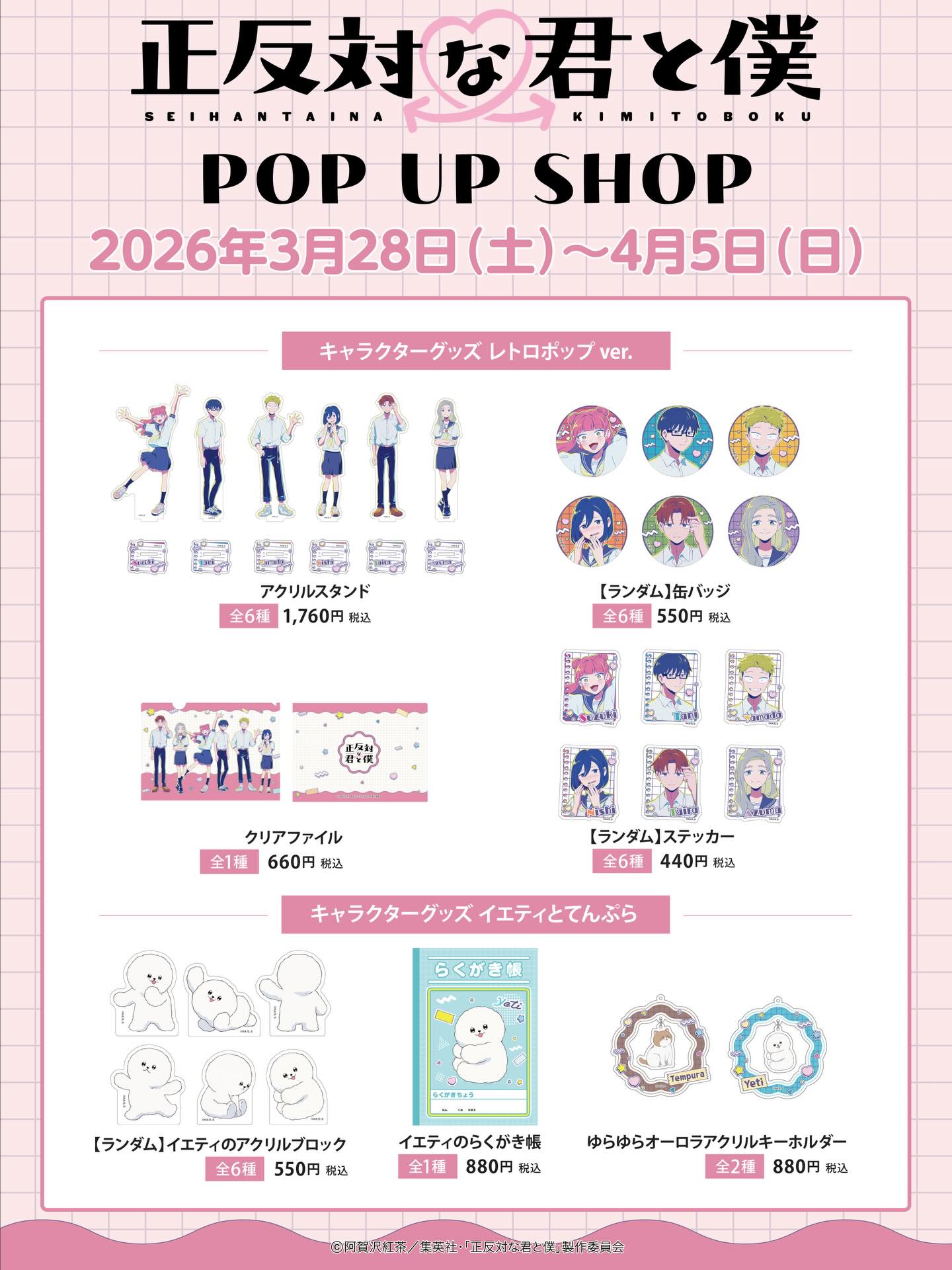 そよら成田ニュータウンとTVアニメ「正反対な君と僕」とのコラボ期間中でのPOP UP SHOPの実施詳細が決定いたしました💓