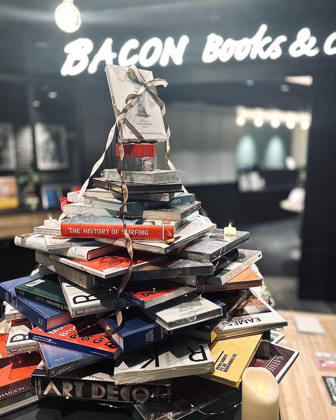 BACONもブックツリーでクリスマスっぽく…。