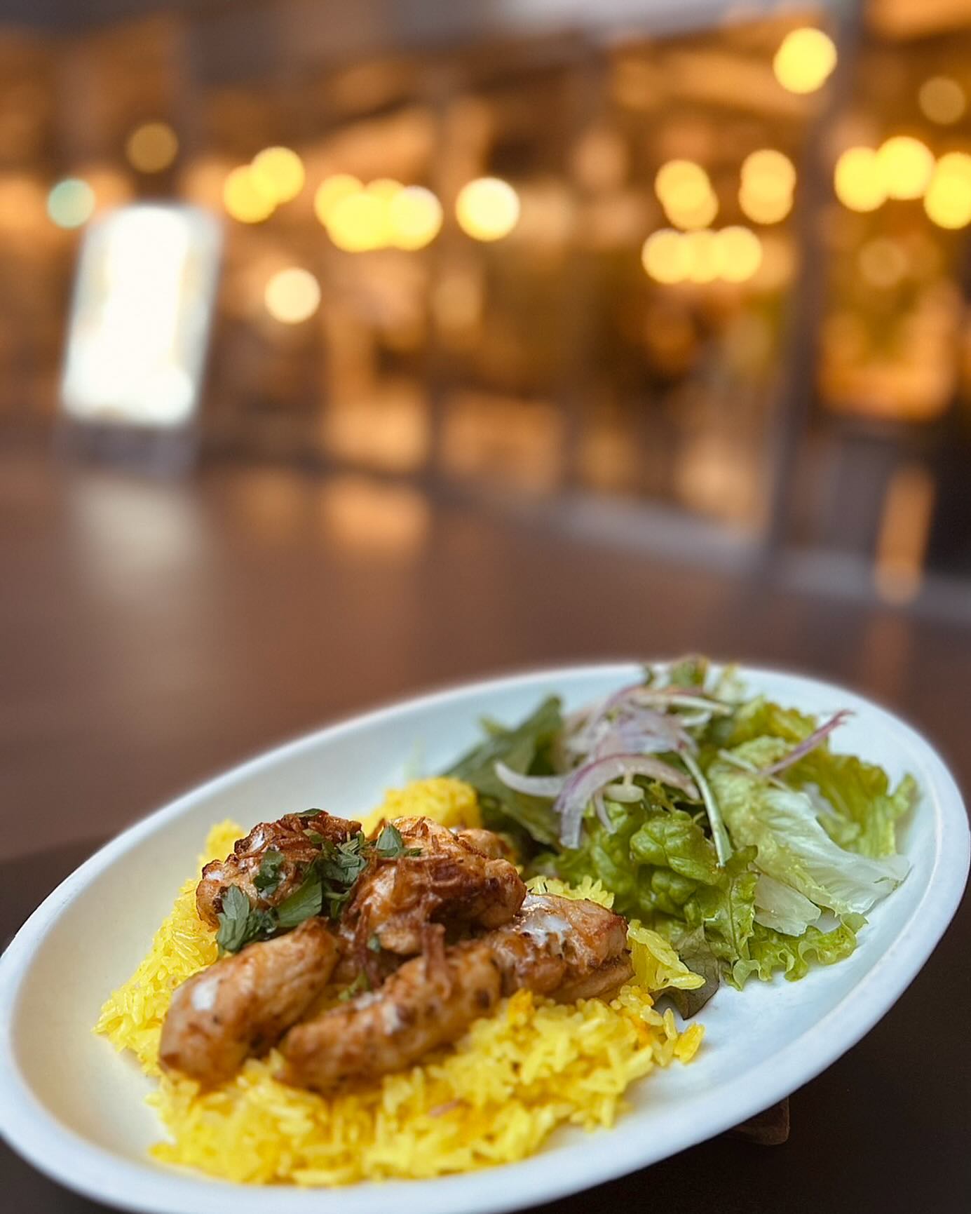 ターメリックライスの上にジューシーなチキン。