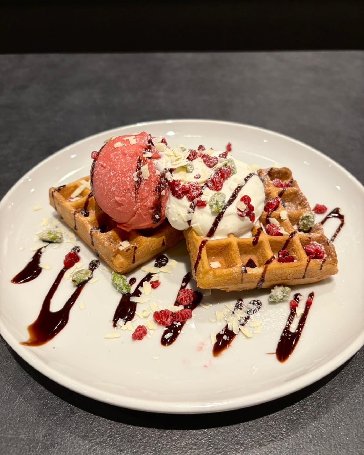 甘酸っぱいラズベリーが口の中に広がり、さくさくのワッフルとの相性も抜群です。